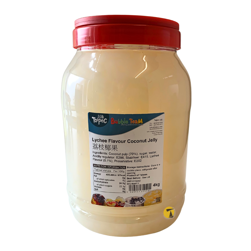 Ingredients: Coconut Pulp (70%), Sugar, Water, Acidity Regulator (E296), Stabiliser (E415), Lychee Flavour (0.1%), Preservative (E202).