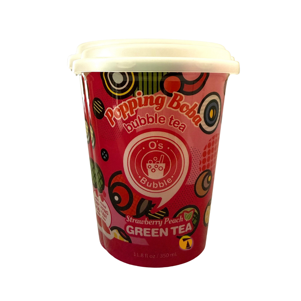 O's Bubble Popping Boba - Strawberry & Peach Bubble Green Tea - 4x350ml